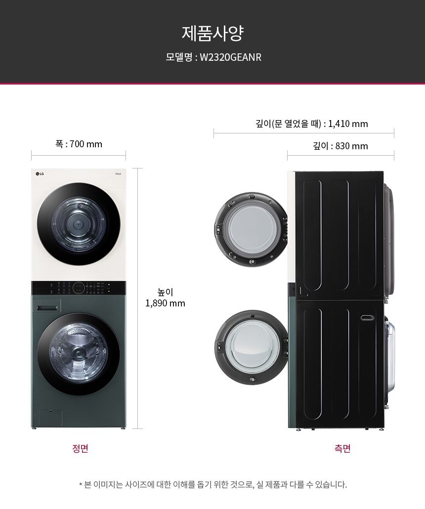 [가전구독/렌탈] LG 트롬 오브제컬렉션 워시타워 세탁23KG 건조20KG W2320EGANR(네이처베이지/네이처그린)